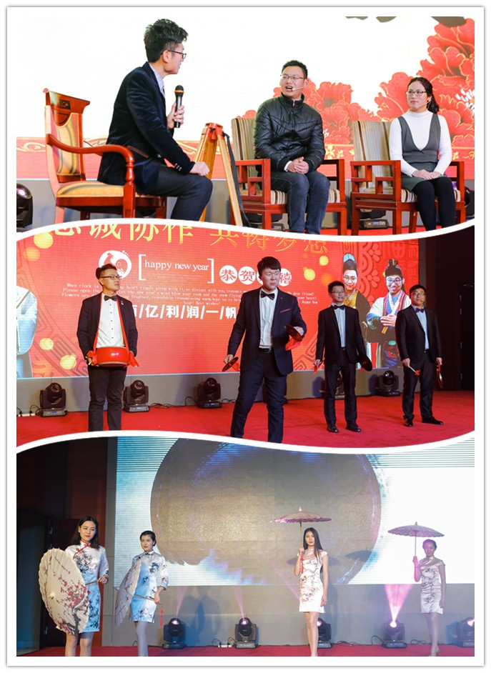 本次年會系公司轉企改制以來,首次將總結、表彰、聯歡、聚餐等諸多內容融合到一起,由全體干部職工共同參與完成的綜合性年度盛會。21日17時18分,由公司副總經理劉博致開幕辭,簡要介紹了本次年會的意義及內容,并宣布年會開始。隨后,在遠建路橋公司全體職工合唱的《我們走在大路上》的歌聲中,拉開了年會的帷幕。合唱結束后,公司董事長、總經理趙峰向全體員工發表了熱情洋溢的新年致辭。致辭中,趙董總結了過去一年公司所取得的成績,對全體員工的辛勤付出和敬業精神表示肯定和贊揚;同時展望未來,提出了2017年公司發展方向和戰略目標;最后向全體干部職工及市政家屬送出了美好的新年祝愿。四位身著盛裝出場的主持人的登臺,標志著年會聯歡晚會正式開始。第一個出場的節目是由公司全體高管合唱的《怒放的生命》。激情澎湃的歌聲,像一團熾熱的火焰照亮了棗莊市政前行的道路;小品《新編昨天今天明天》,由路橋分公司三位年輕職工默契配合,風趣搞笑,進一步烘托了年會輕松愉快的氣氛;《民族舞+書法展示》,淋漓精致的展現出舞者舞姿的輕靈和優美及臺上書法者專注的神情、瀟灑的揮筆;搞怪雙人秀《小人舞》搞怪的動作、嫻熟的步伐、完美的配合,真正的我型我秀,為大家演繹著:我的舞臺,我做主;剛勁有力地跆拳道表演,在展示年輕市政人多才多藝的同時,用一種藝術的手法詮釋了市政人敢打硬仗、能打勝仗的鐵軍精神……21個精彩節目、39項年會流程,為棗莊市政全體干部職工奉上了一道精彩絕倫的視覺盛宴。在年會進行過程中,公司全體高管為2016年度獲得先進集體、優秀個人、安全文明工地、金杯示范工程項目及QC工法獲獎項目部的集體和個人進行了表彰,表達了對員工的肯定和感謝,并鼓勵大家在新的一年里再接再厲,2017年再創佳績!同時,年會過程中,除了精彩紛呈的演出節目,還設置了現場抽獎環節。共設置一等獎一名、二等獎五名、三等獎十名。其中,二三等獎,分別在演出過程中,在主持人的組織下,由演出演員隨即抽取,一等獎由趙峰董事長現場抽取并親自頒發。趙峰董事長在抽取并頒發了一等獎后,即興演唱的歌曲《愚公移山》將整臺晚會推向了高潮。最后,持續長達3個多小時的迎新晚會在魯衡全體職工《相親相愛》的歌聲中圓滿落幕。公司高管上臺與演職人員合影留念,銘記下晚會的美好時刻。
