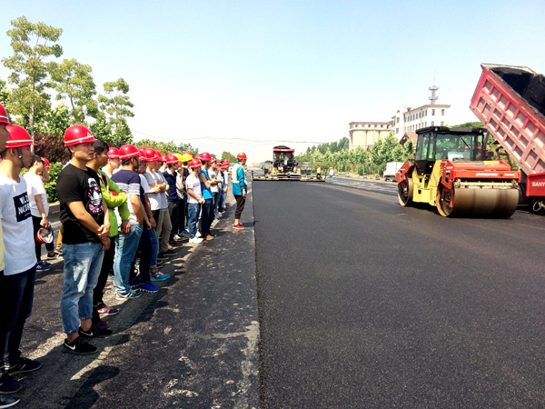 我公司作為棗莊學院教學實踐基地,承擔了棗莊學院相關專業教學實踐活動相關職能。為在校生提供實地教學觀摩和講解,是我公司的一項重要社會職能。本次赴我公司學習觀摩的學生,均為棗莊學院城市與建筑學院2013級土木工程專業在校生。師生一行先后參觀了遠建路橋分公司路面材料生產現場和路橋一分公司匯泉路項目瀝青攤鋪現場。