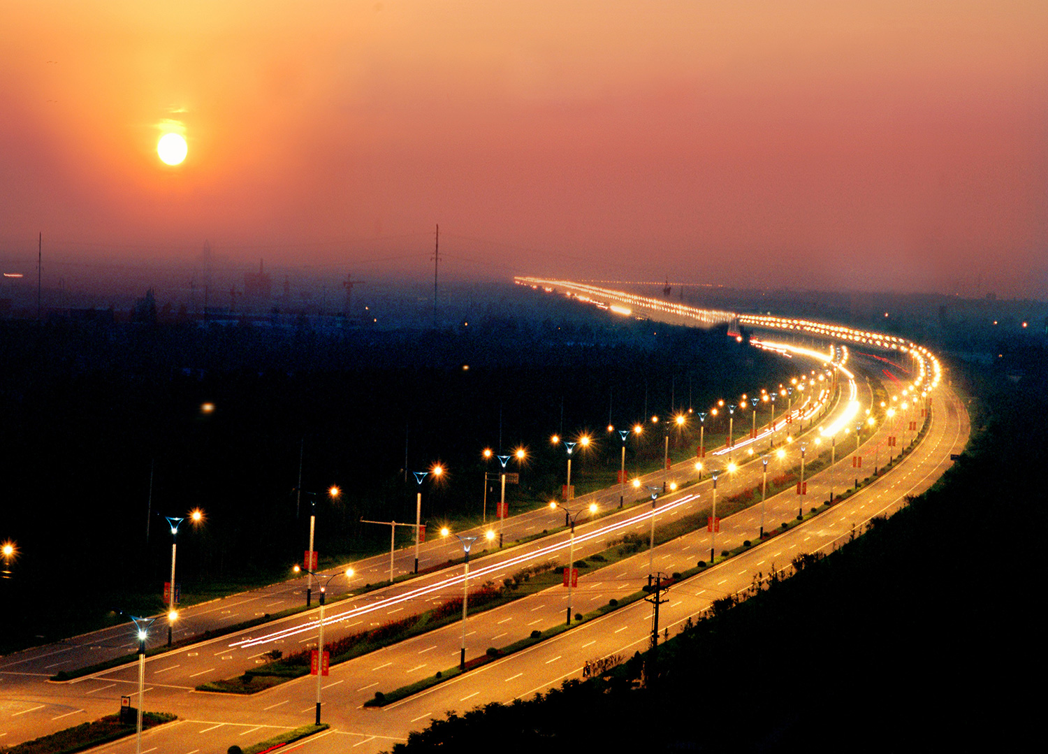“遠遠的街燈明了,好像閃著無數(shù)的明星;天上的明星現(xiàn)了,好像點著無數(shù)的街燈”,光明大道路燈在夜晚就像一座金色的彩橋,照…